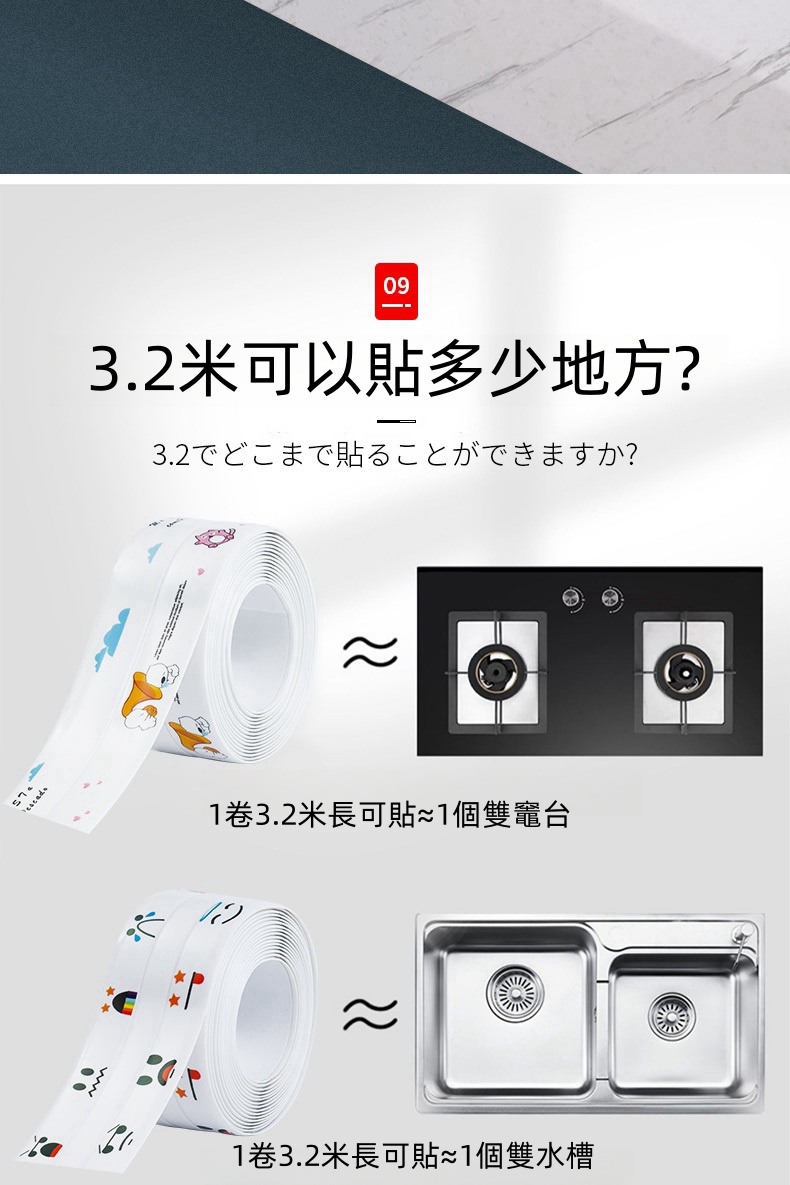 20分鐘前限時搶購 美縫貼防水防霉廚房水槽洗碗灶台封邊擋水條,衛生間馬桶邊緣縫隙貼 - 【嘗鮮價】3入組-NT$980