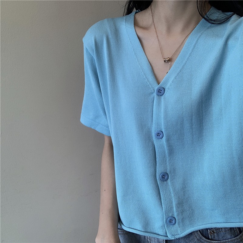 5分鐘前氣質v領薄款打底針織衫,2020夏季新款女裝短款開衫上衣 - 【買一送三】任選4件,僅需NT$1198