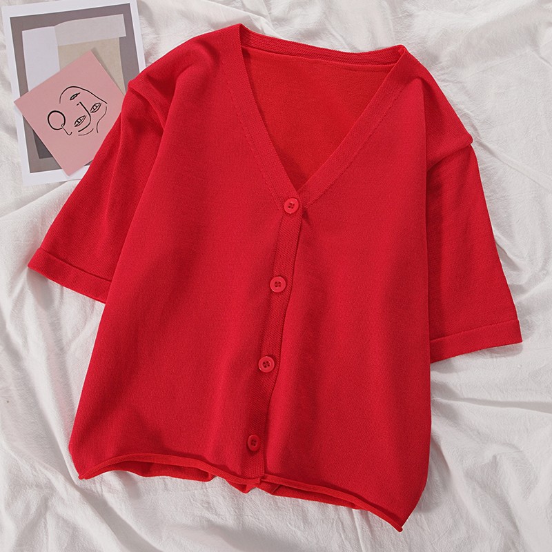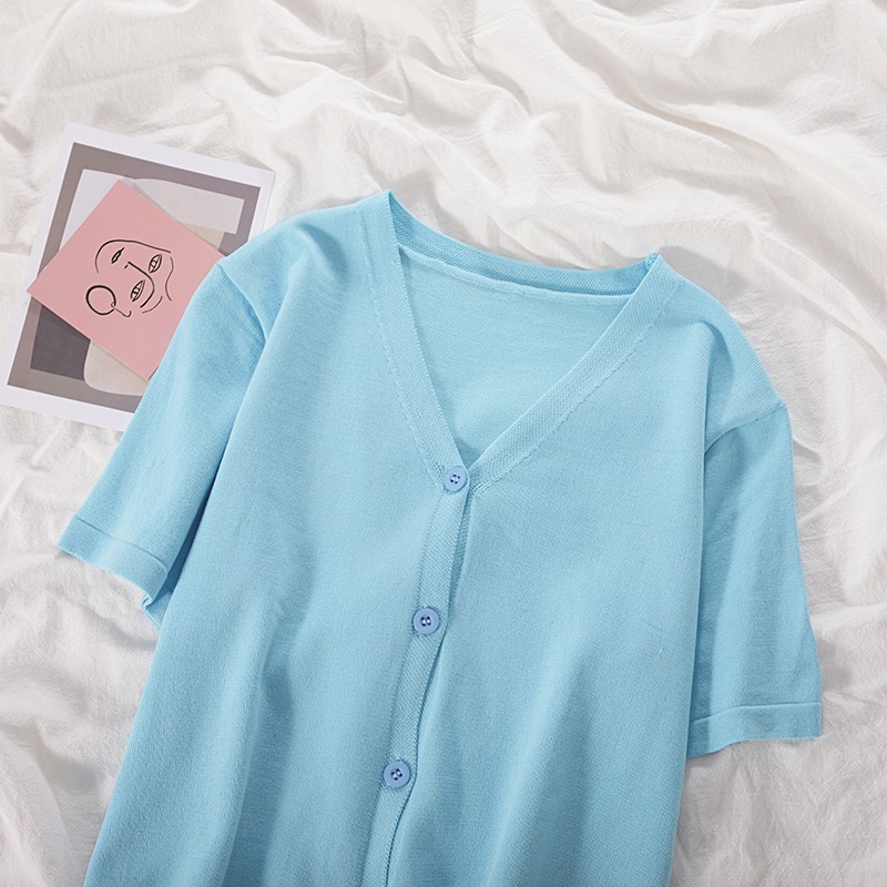 15分鐘前氣質v領薄款打底針織衫,2020夏季新款女裝短款開衫上衣 - 【買一送三】任選4件,僅需NT$1198