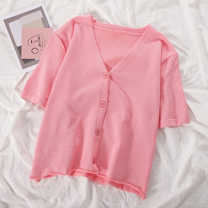 半小時前氣質v領薄款打底針織衫,2020夏季新款女裝短款開衫上衣 - 【買一送一】任選2件,僅需NT$998