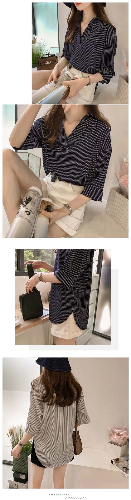 半小時前新品上市,勁爆特殺!全場大放送,單件低至NT$432,2020新款夏裝中長款韓版寬松顯瘦條紋襯衫女七分袖,廠家直銷,超值優惠,買到賺到!過後漲價! - 【買一送一】任選2件 僅需NT$1098,單件低至549