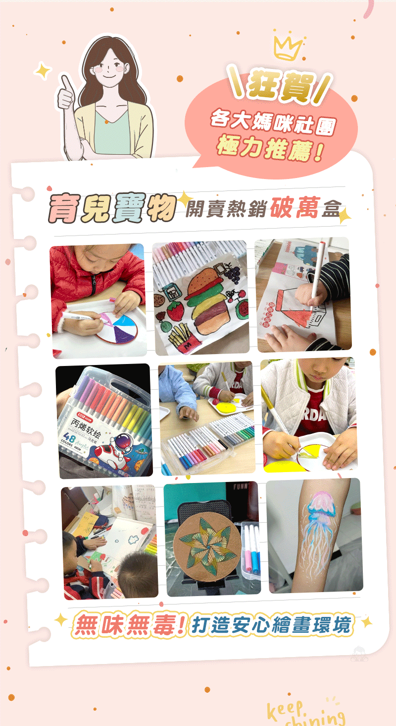 2分鐘前丙烯彩繪馬克筆 超強覆蓋力,萬物材質皆可畫,專為兒童研發,輕鬆擦拭不卡色 - 【兩套】丙烯彩繪馬克筆 (48色)NT$880