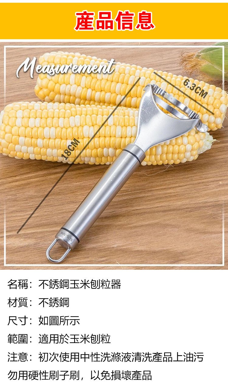 11分鐘前火爆熱賣 不銹鋼玉米刨粒器 鋒利鋸齒,剝落乾淨,絕不浪費 剝玉米,胡蘿蔔皮 土豆皮,304不鏽鋼材質,易於清洗 - 【新品特賣】5入組-NT$980