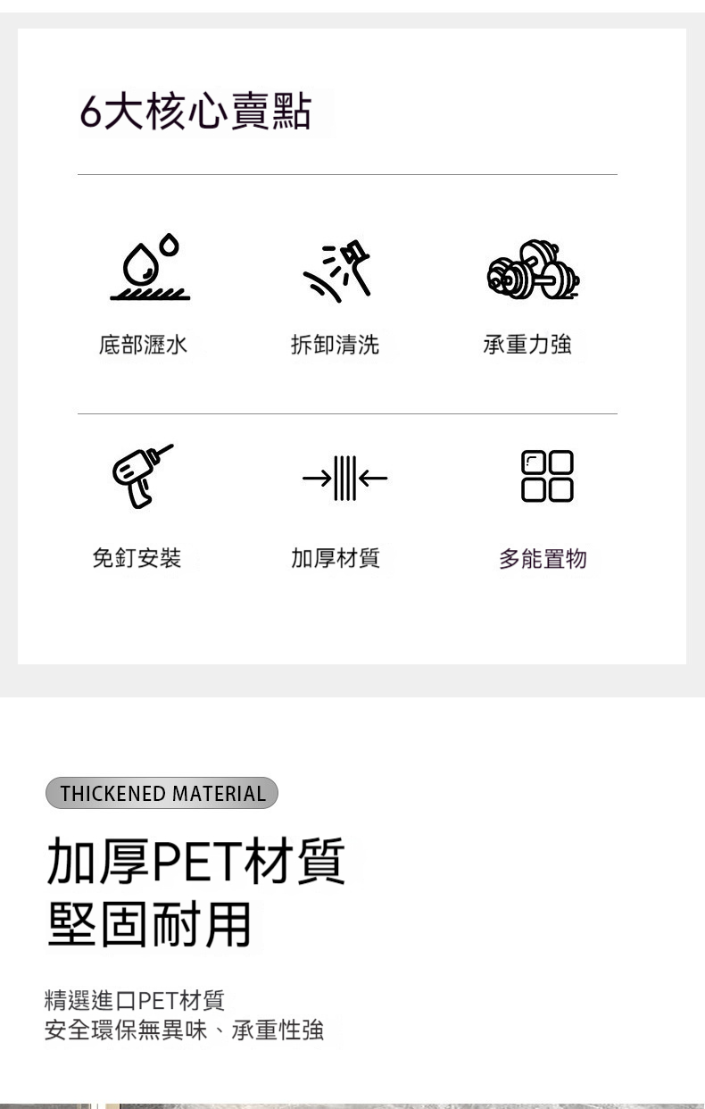 5分鐘前【免打孔吸盤置物架】免鑽孔不傷牆!隨心換位不留痕!乾淨整潔收納無拘束! - 【虧本特價】四入組 - NT$1280(均價320/入)